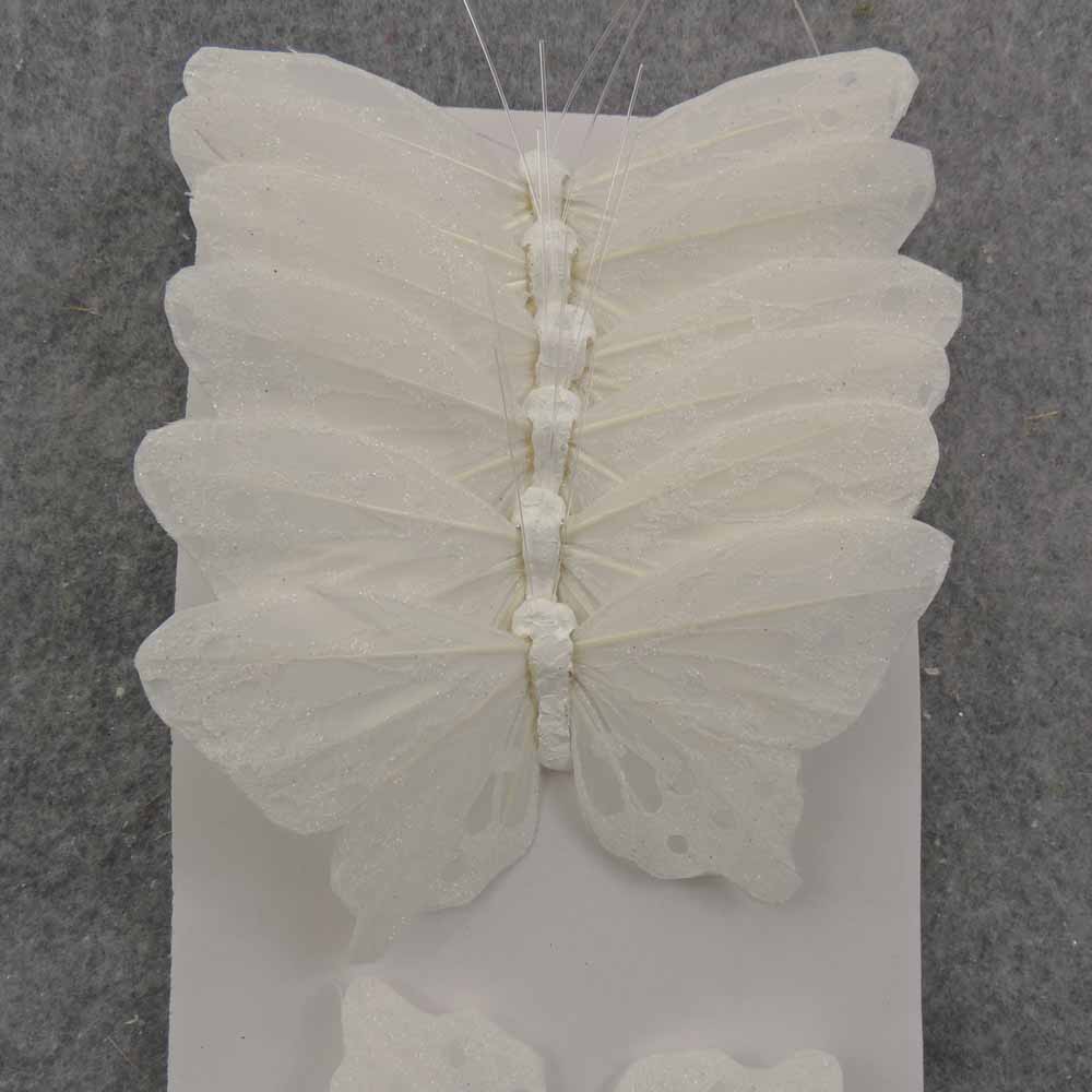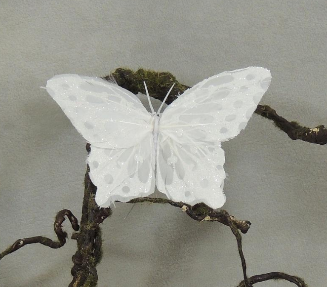 Our new 4.75″ White Mica Artificial Butterfly comes with a sturdy 8″ mounting wire. Exquisite large butterfly is a perfect artificial butterfly for decorating weddings and parties, as well as the center of a gorgeous wedding brides bouquet.